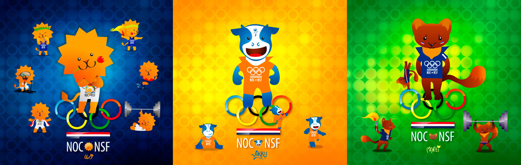 Proposals for the Dutch olympic mascot, part of a big national pitch. The first proposal ended -amongst hundreds of presented designs- in the last semifinals and it was the personal favorite of Erica Terpstra Chairman of the organization.