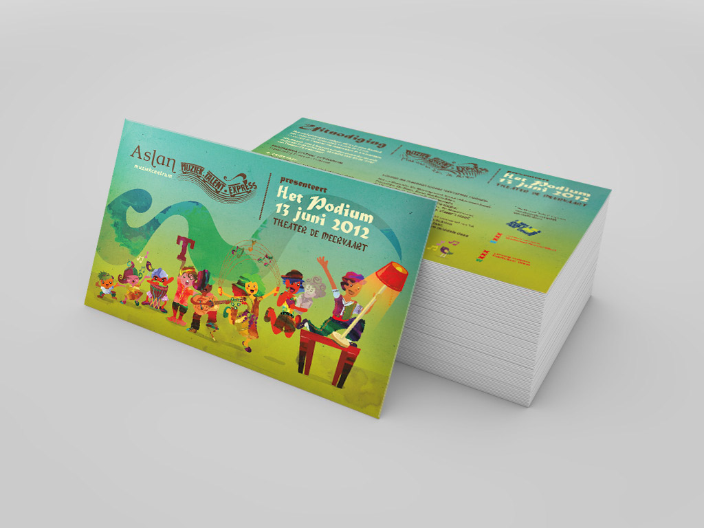 Invitation flyer for musical the podium of MTE. The illustration highlights the learning line of children in different ages.